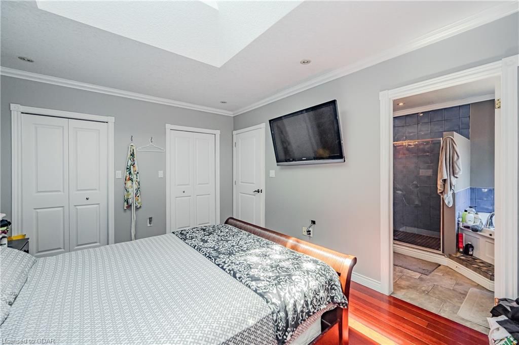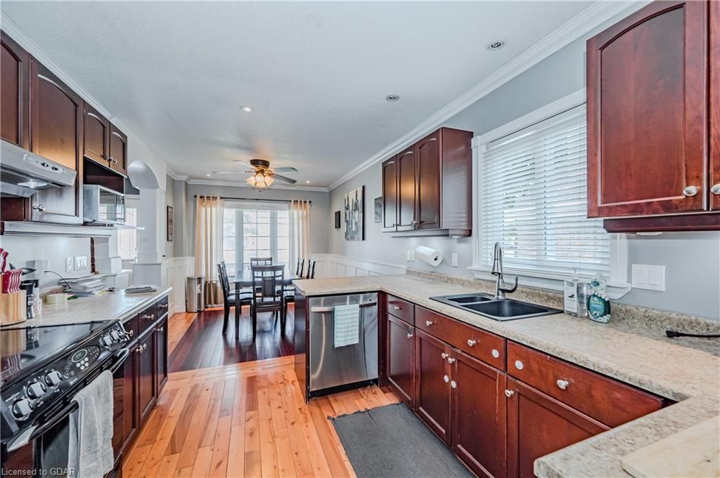 The main floor offers a seamless flow, including a chef's style kitchen, an adjoining dining room, a family room with sliders leading to a massive 14' x 20' deck overlooking a mature backyard, and an additional room perfect as a living room or home office with French doors. Upgrades such as pot lighting and exotic hardwood floors span both levels, enhancing the elegance of the home.